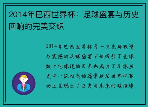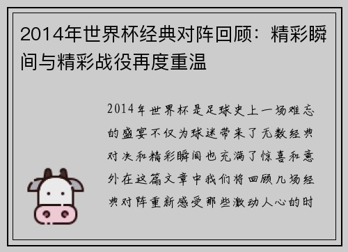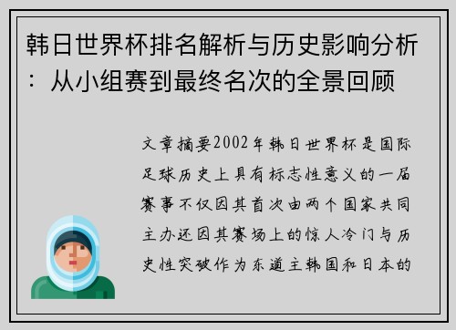 文章摘要:本文将深入分析中国队在巴西世界杯小组赛中的精彩表现和最终比分,通过四个方面详细阐述中国队的战术布置、球员个人表现、与其他强队的较量以及赛后结果的解读。首先,文章会分析中国队在小组赛阶段的整体战术布局和队员们如何根据对手的特点进行相应的调整。其次,文章将探讨中国队球员在场上的个人表现,特别是关键球员的作用。接下来,文章将重点讨论中国队在与世界强队的较量中的优势与不足,分析比赛过程中的转折点...