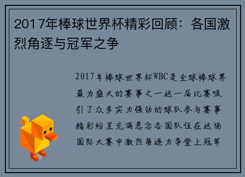 本文将回顾世界杯历史上那些令人震惊的爆冷赛事与意外胜利时刻,这些赛事不仅改变了比赛的走向,也深刻影响了世界足球的格局。从几乎不被看好的球队逆袭强敌,到出现不为人知的黑马,世界杯作为世界足坛最具影响力的赛事之一,总是充满了不可预测的变数。通过回顾这些震撼的时刻,本文试图展现出足球比赛中那些难以预料的戏剧性瞬间,分析为何会发生这些爆冷,以及这些赛事如何影响了世界杯的历史和世界足球的发展。文章将从四个方...
