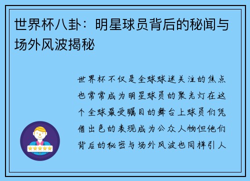 文章摘要:世界杯作为全球最具影响力的体育赛事之一,每一届比赛都不仅仅是运动员之间的竞技较量,更是各国文化的碰撞与交流。邵圣懿作为体育解说员,以其独到的视角和深刻的见解对赛事中的精彩瞬间和背后故事进行了多角度的解读。本文将通过邵圣懿的视角,从赛事的激烈对决、背后深藏的文化符号、球员的情感表达以及赛事对社会影响等四个方面展开详细探讨,揭示世界杯赛场上激烈竞技与文化碰撞的深刻内涵,帮助读者更好地理解这项...